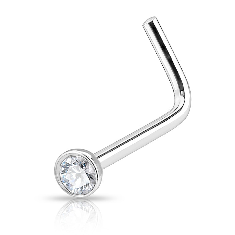 Liebst du schlichte Schmuckstücke? Dann ist dies ganz klar ein Schmuckstück für dich. Das Design ist nämlich ganz schlicht gehalten und passt somit zu jeder Gelegenheit. Der kleine Steine auf der Vorderseite lässt das Piercing elegant wirken, fällt aber nicht so gewaltig auf, so daß der Nasenschmuck immer diskret aussieht.