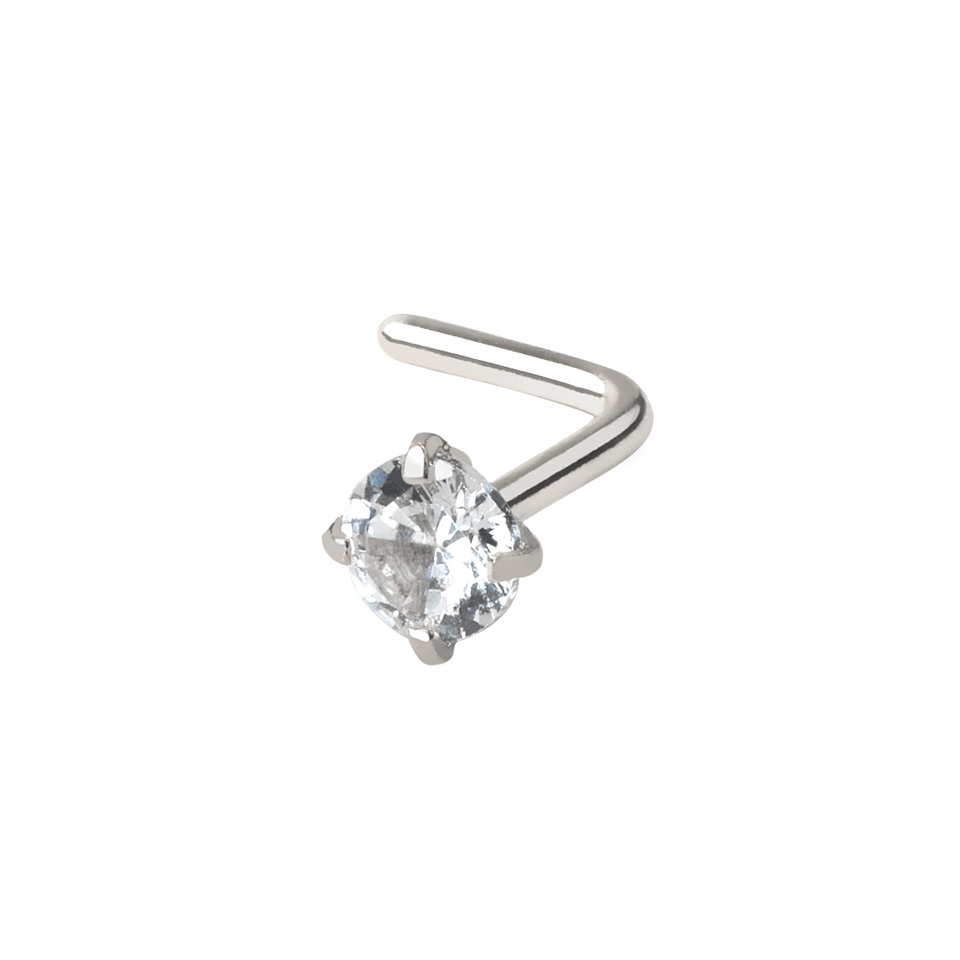 Das Nasenpiercing hat eine L-Form, aufgrund derer der Schmuck gut und fest in deiner Nase sitzt und nicht leicht herausfallen kann. Alle Versionen dieses Nasenpiercings haben die gleiche Größe und somit eine Stabstärke von 0,8 mm und eine Länge von 6 mm. Die Größe der Steine variiert je nach Modell zwischen 2,5 mm und 3 mm - das liegt daran, dass die Steine in verschiedene Formen geschnitten werden. Alle Modelle dieses Nasenpiercings sind aus Chirurgenstahl gefertigt.