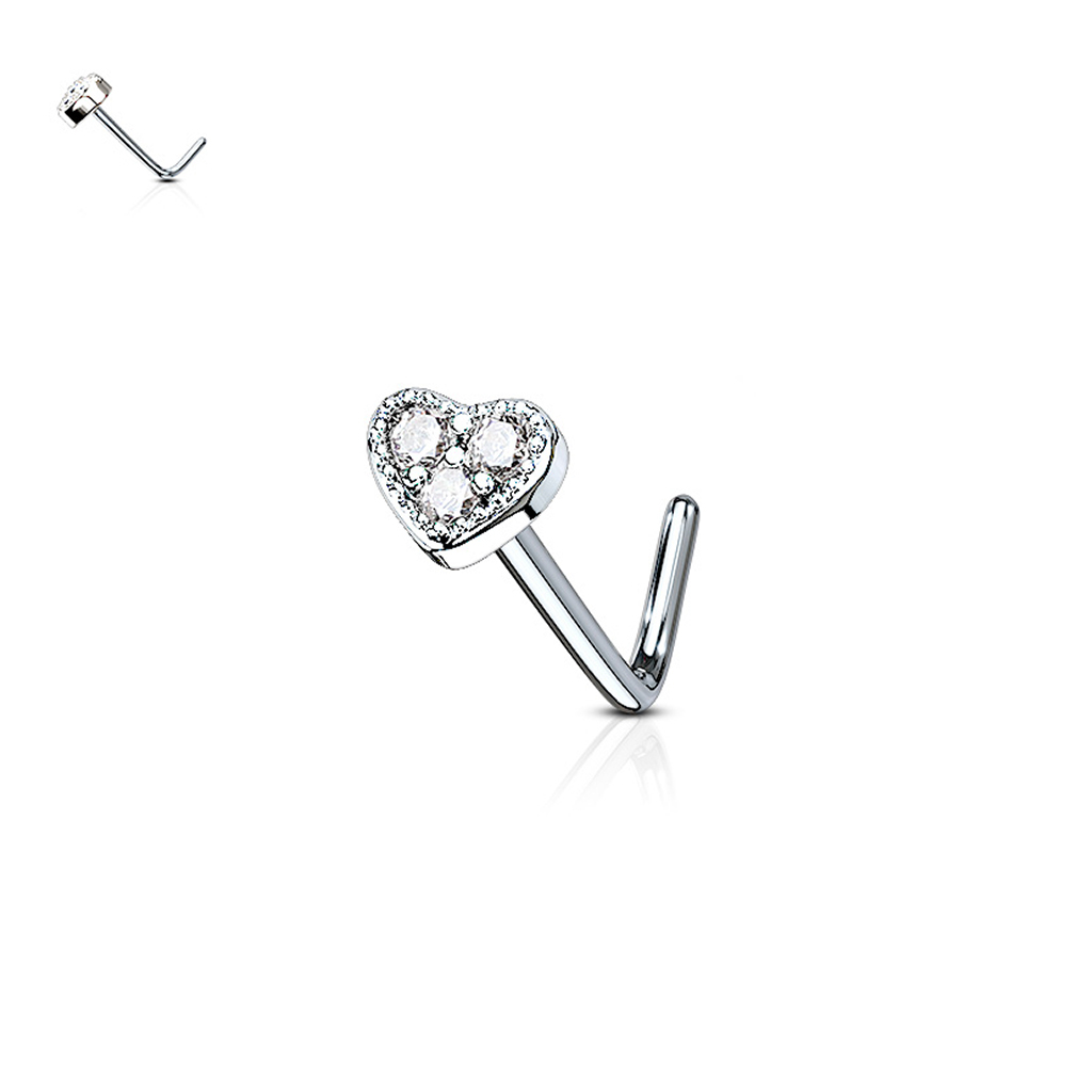 Dieses Nasenpiercing ist ein wenig eine Mischung aus einer Nasenschraube und einem Nasenstecker. Es hat keine Schraube am Ende, wie gewöhnliche Nasenschrauben sie eigentlich haben. Jedoch hat es ein "längeres" Ende als ein normaler Nasenstecker, der normalerweise nur ein gerader Stab ist. So hat dieses Nasenpiercing am Ende eine 90-Grad-Biegung, die auf der Innenseite der Nase sitzen soll und so dafür sorgt, dass der Schmuck nicht herausfällt.
