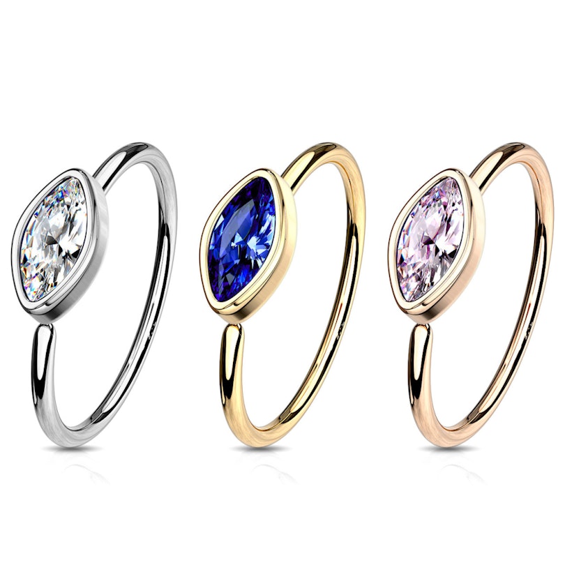 Dieser Ring besteht aus Chirurgenstahl und misst 0,8 mm in der Stabstärke sowie 8 mm im Durchmesser. Somit eignet er sich perfekt für ein Nasenpiercing. Um den Ring einzusetzen, musst du lediglich die Enden leicht auseinander bewegen. So behält der Ring seine Form.