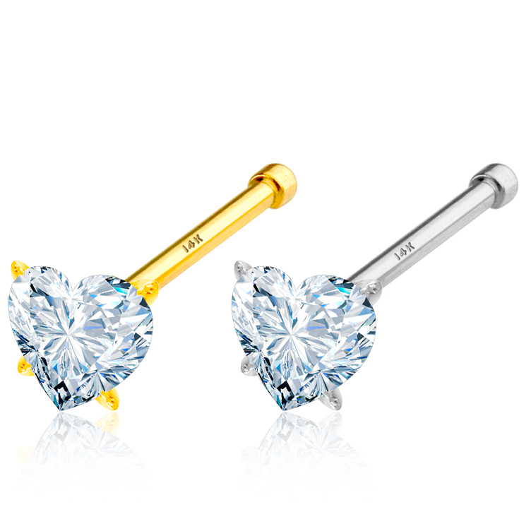 Nasenstecker aus 14 Karat Gold mit einem Herzstein