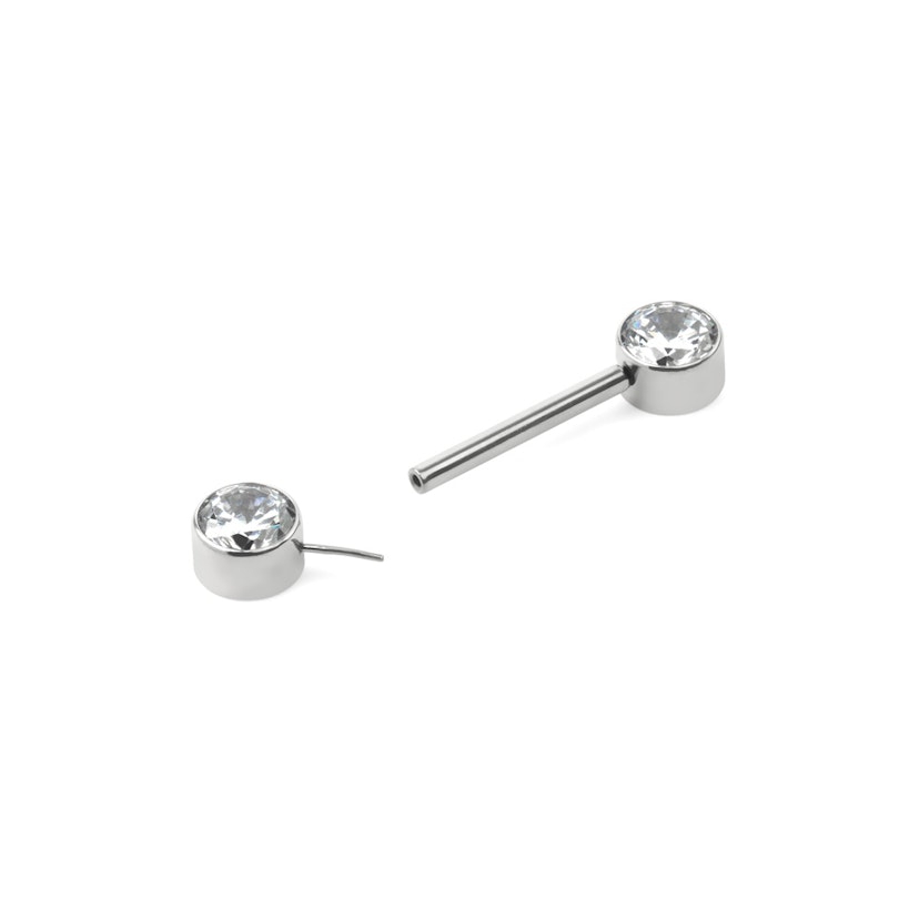 Name: Nippel-Barbell aus Titan mit gewindelosen, eingefassten Steinen