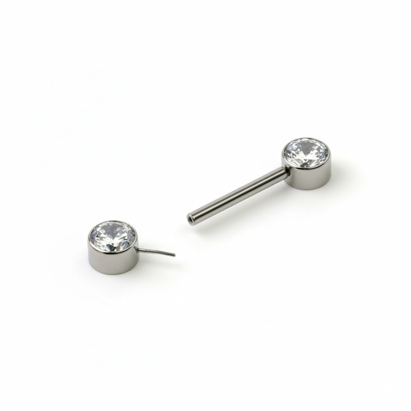 Nippel-Barbell aus Titan mit gewindelosen, eingefassten Steinen
