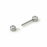 Die hier gezeigte Brustwarzenbarbell hat weder ein Gewinde noch einen anderen Verriegelungsmechanismus. Es besteht aus einem 14 mm langen und 1,6 mm dicken Stab mit einem winzigen Loch von 0,55 mm an jedem Ende. In dieses Loch passt ein kleiner Stift, der an einer Kugel befestigt ist. Die Kugel ist flach auf dem Rücken und hat eine Höhe von ca. 4 mm und einen Durchmesser von 6 mm. In der Mitte der Kugel befindet sich ein Stein, der in einer von mehreren Farben erhältlich ist, aus denen du auswählen kannst.