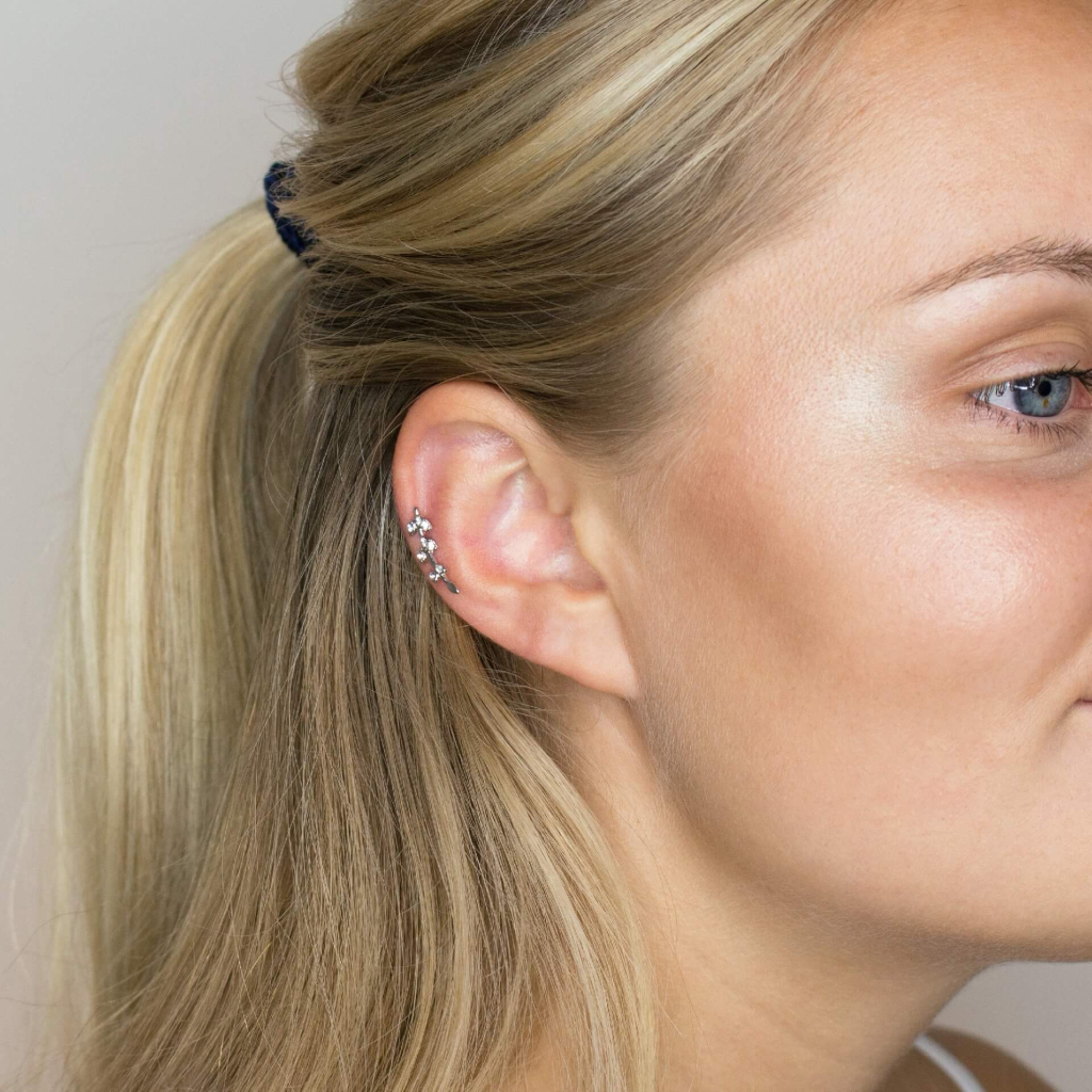 Ohrpiercing mit Blättern aus Steinen