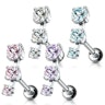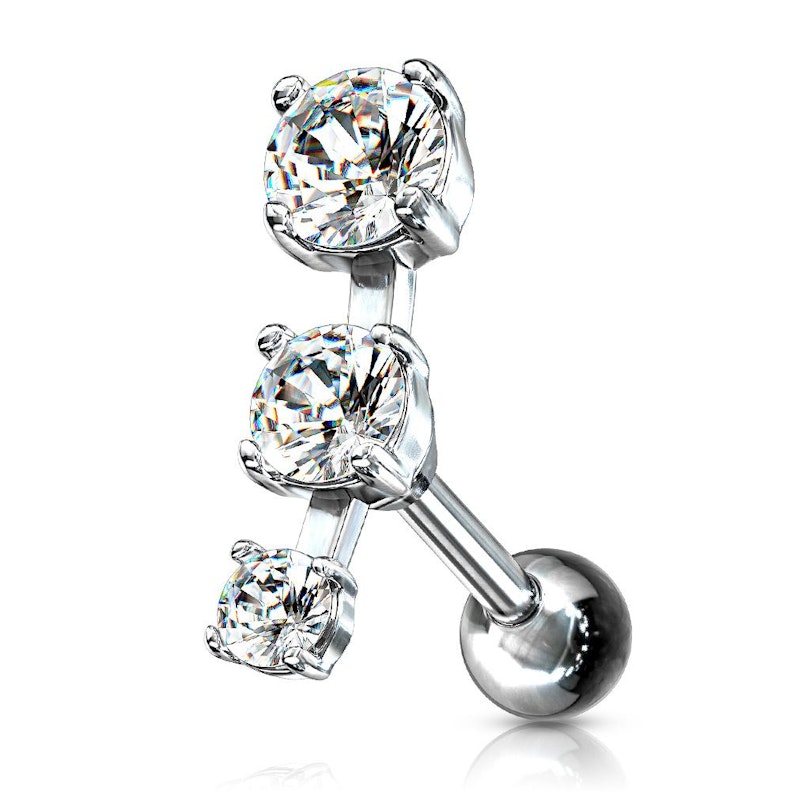 Dieses Ohrpiercing wurde aus chirugischen Stahl hergestellt und mit drei kleinen Steinen in einer Reihe versehen, die immer kleiner werden, wie eine Sternschnuppe.
