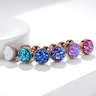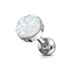 Hier kannst du ein kleines und diskretes Ohrpiercing mit einer großen Persönlichkeit betrachten. Der Schmuck misst 6 mm in der Länge und die Topkugel hat den gleichen Durchmesser. Der Druzy Stein in der Topkugel verleiht dem Schmuck eine grandiose Erscheinung. Ein Druzy Stein an sich ist jedoch kein richtiger Stein, sondern eine Schicht aus kleinen Kristallen. Die Kristallformation ist in fast allen Farben des Regenbogens erhältlich, wie z.B. blau oder weiß. Das Geniale an diesen Kristallen ist, dass sie nicht nur die von dir gewählte Hauptfarbe enthalten, sondern auch viele andere Farben, welche der Hauptfarbe nahe liegen.