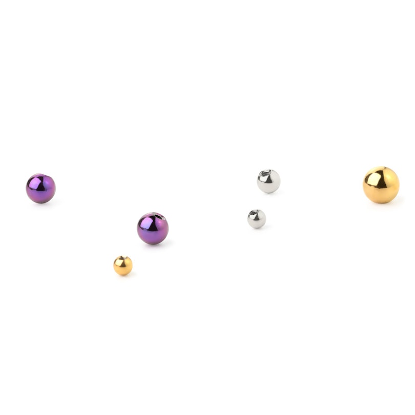 Diese unglaublich schönen Piercingkugeln sind aus reinem Chirurgenstahl und mit einer dünnen Titanschicht versehen, die durch ein Ionisierungsverfahren erreicht wird.