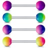 Im Bild oben siehst du einen Piercingstab aus Chirurgenstahl mit zwei beschichteten Kugeln an den Enden. Die Kugeln sind mit Gummi überzogen und haben verschiedene Farbnuancen. Du kannst aus den verschiedenen Farbnuancen der Kugeln die wählen, die dir am besten gefällt - wie zum Beispiel blau/grün oder pink/gelb. Die verschiedenen Piercingstab-Varianten haben alle eine Stabstärke von 1,6 mm und eine Länge von 16 mm. Die beiden Kugeln sind abschraubbar, so kannst du auch jederzeit einen längeren oder kürzeren Stab kaufen.