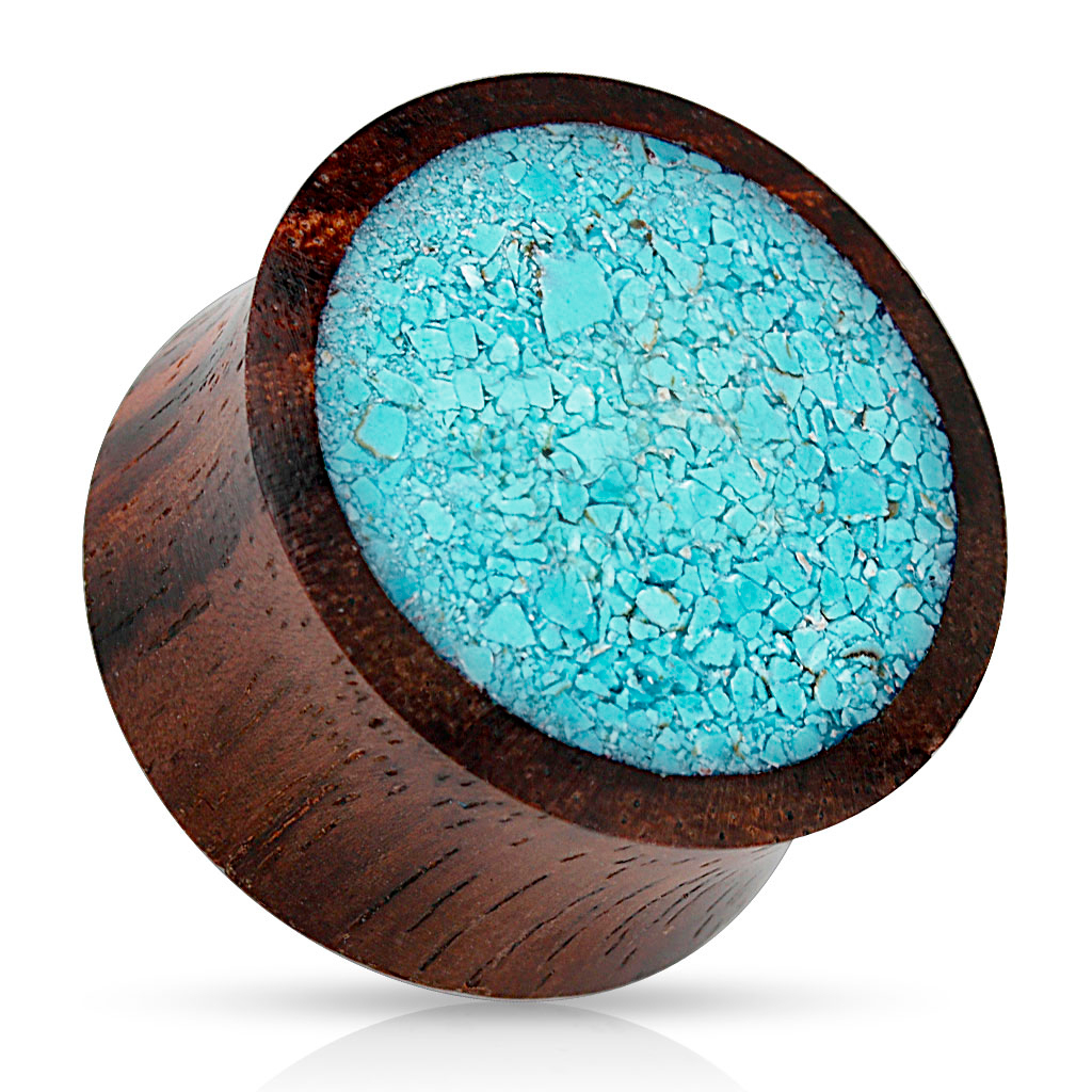Name: Plug aus Holz mit einem zersplitterten Türkis