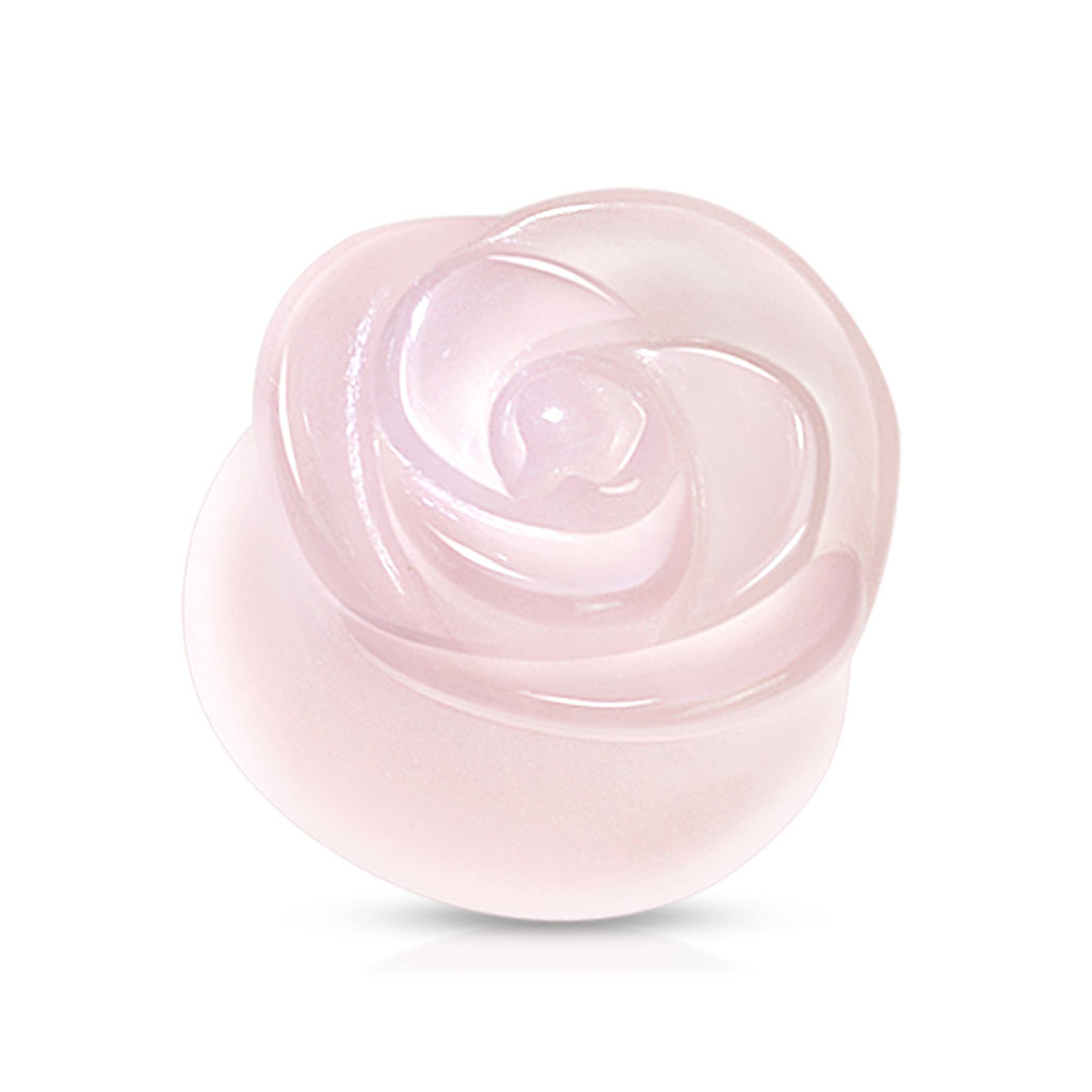 Plug aus Rosenquartz mit einer Rose