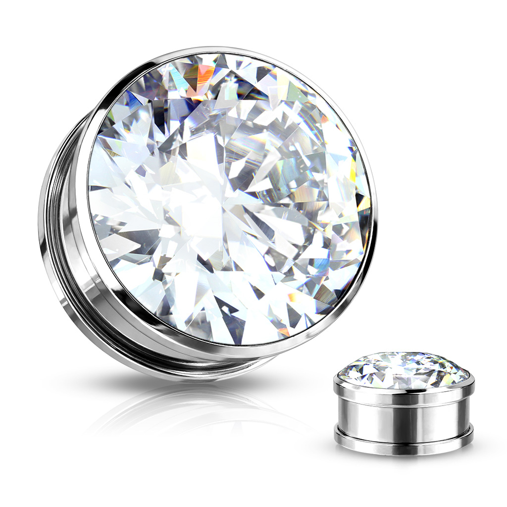 Dieser Plug wurde aus Chirurgenstahl gefertigt und ist in vier verschiedenen Farben und vielen Größen erhältlich. Auf der Vorderseite sitzt ein schöner, großer, diamantenförmiger Stein in einer wirklich schönen und kräftigen Farbe, die selbst bei der kleinsten Größe ins Auge fällt. Dieser Plug wird auf der Rückseite mit einem Schraubgewinde verschlossen, so daß es wirklich einfach ist, diesen Plug einzusetzen. Auch vom Gewicht ist dieses Schmuckstück angenehm zu tragen.