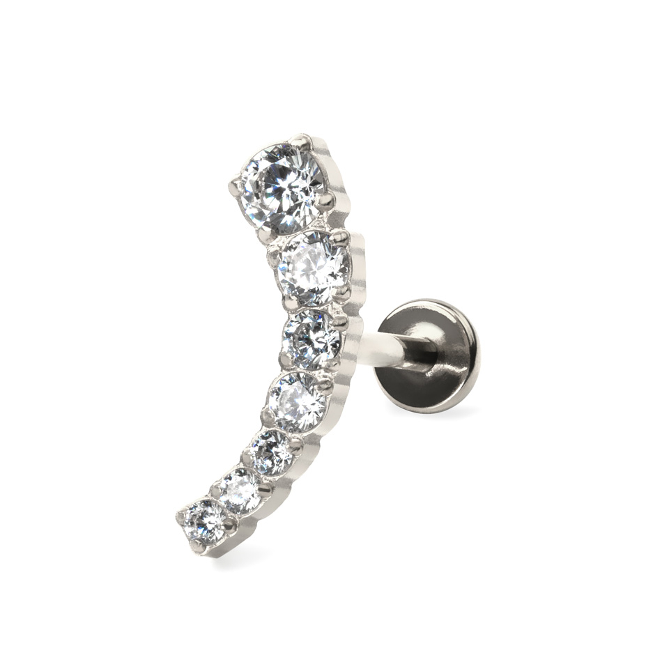 Push-in Labret aus Titan mit gebogenem steinbesetztem Aufsatz