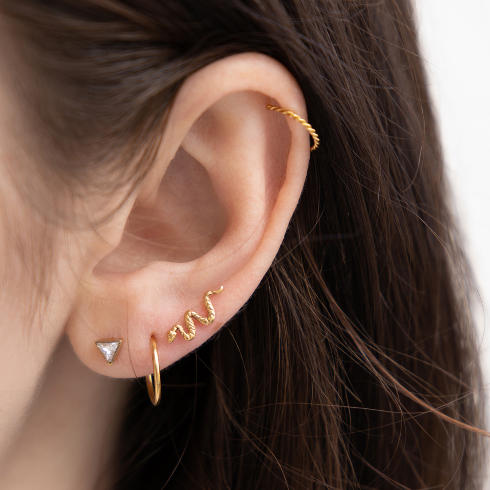Das Schmuckstück ist sehr schön und detailliert, und die Tatsache, dass es dünn ist, macht es dezent und tragbar, auch wenn man mehrere Ohrringe in einem Ohr hat, ohne dass es zu überladen wirkt. Das einzige Problem, das ich erwähnen möchte, ist, dass der Stift des Ohrrings sehr kurz ist, während der Stift hinten viel zu lang ist, was das Schließen erschwert.