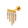 Die rechteckige Vorderseite dieses Labrets hat ein gesprenkeltes Muster, das diesem Stück ein interessantes, strukturiertes Design verleiht. Von dem Rechteck hängen fünf Kettchen unterschiedlicher Länge herab, das längste in der Mitte, sodass es wie ein Chevron aussieht.