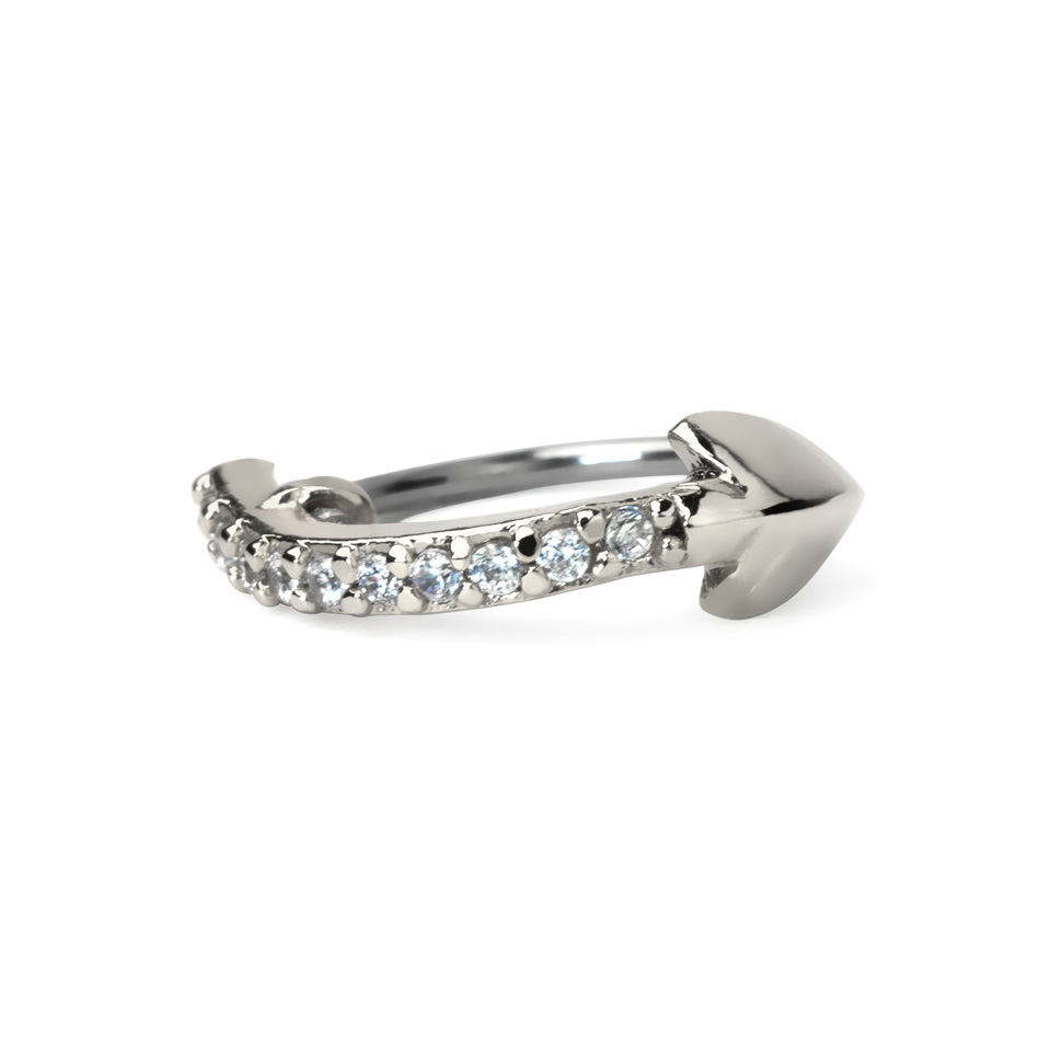 Die Seite des Rings, die mit der Haut in Berührung kommt, besteht aus Chirurgenstahl, die Verzierung aus Messing. Wie bereits erwähnt, gibt es viele Optionen zur Auswahl, aber die Größe ist bei allen Modellen identisch. Die Stärke des Rings beträgt 0,8 mm. Du kannst dies mit der Größe deines Piercings vergleichen. Um ihn einzusetzen, drehst du ihn vorwärts oder rückwärts, so dass er ein S bildet; sobald du ihn durch dein Piercing gesteckt hast, schließt er sich von selbst.