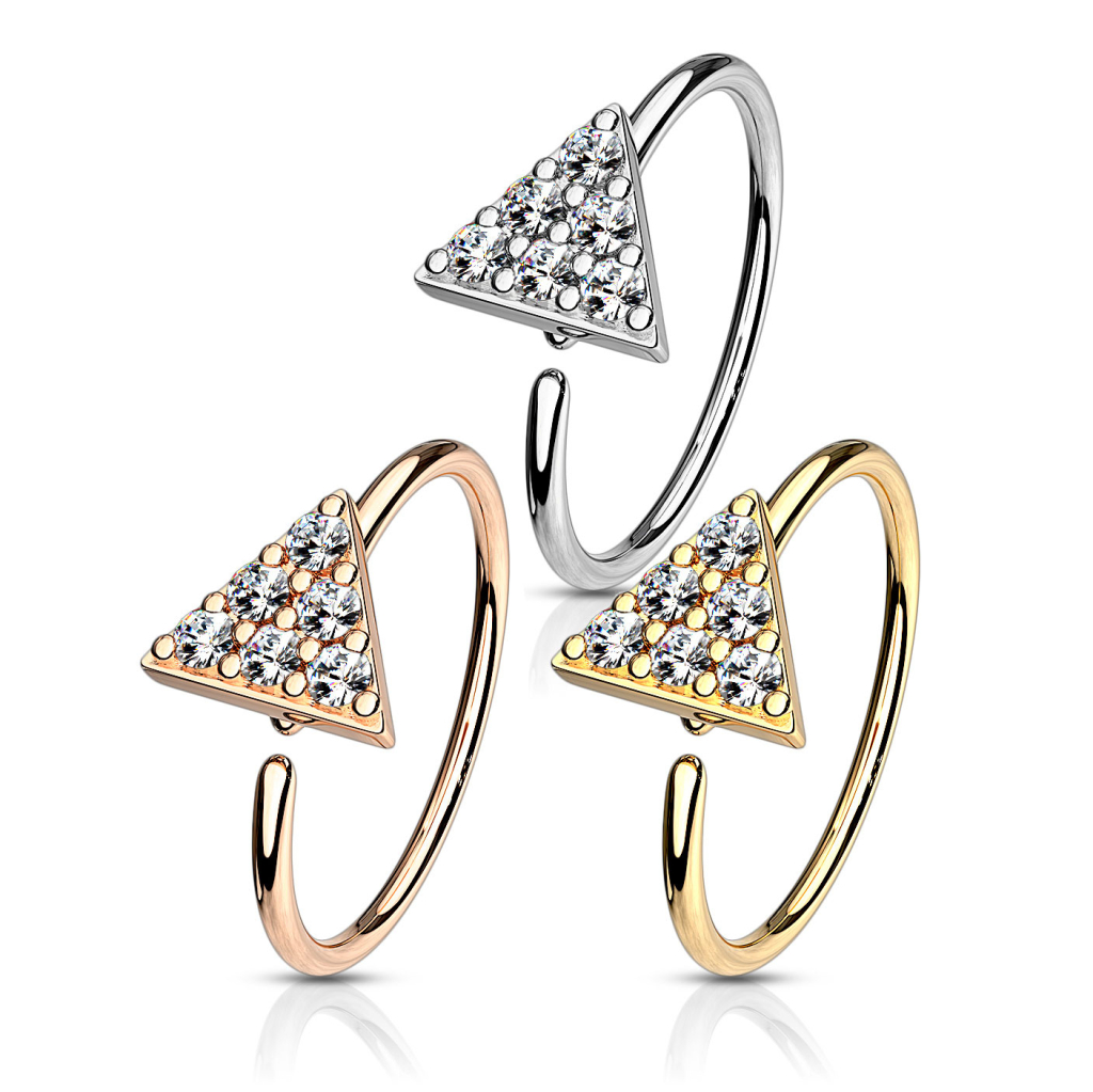 Auf der Vorderseite des Schmucks sitzt ein kleines Dreieck. Das Dreieck wurde mit vielen kleinen Steinen versehen, welche funkeln und glitzern. Das Dreieck wurde auch mit einer Beschichtung versehen, durch diese hat auch das Dreieck die von dir gewählte Farbe.