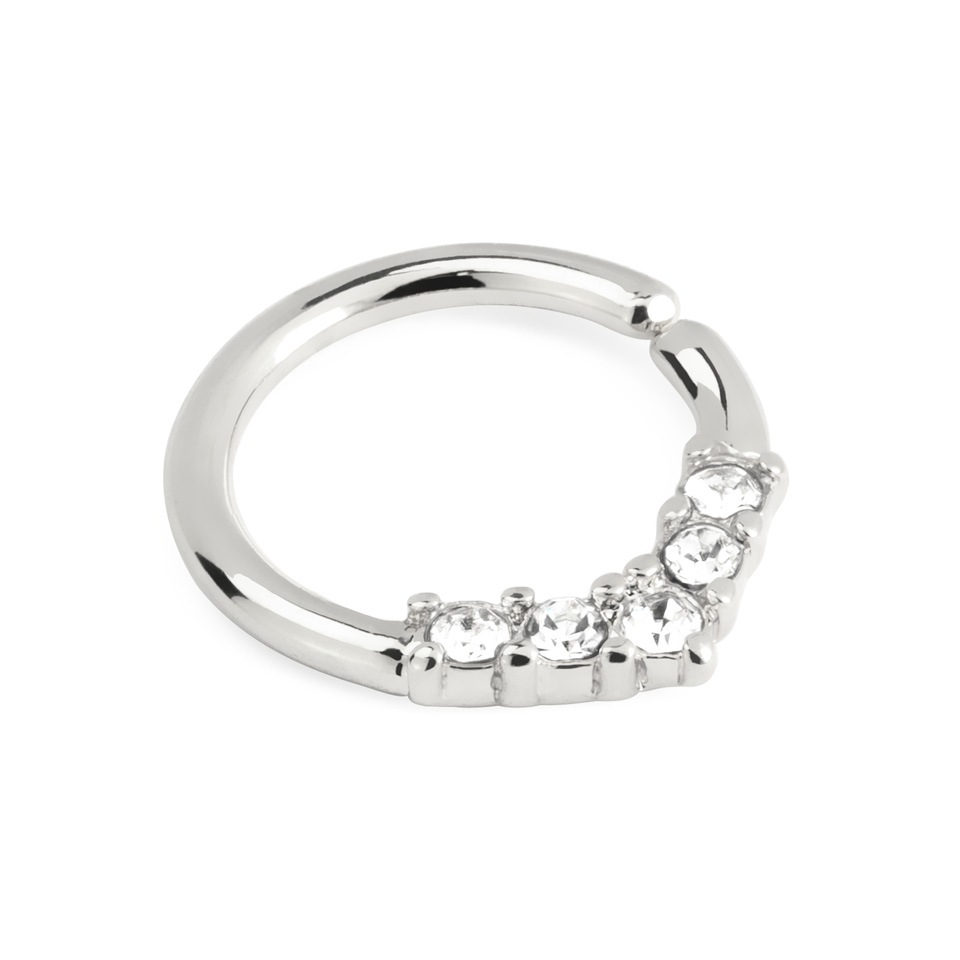 Der Ring ist so designet, dass er unglaublich leicht in das Piercingloch eingesetzt werden kann. Der Ring hat an der Seite in kleines Loch, hiermit kann er auseinander gedreht und somit eingesetzt werden. Dadurch wird sichergestellt, dass der Schmuck weder seine Form, noch seine Schönheit verliert.