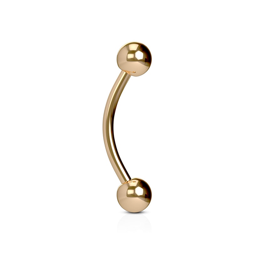 Gebogene Piercingstecker sind für fast alle Arten von Piercings geeignet, wo die Maße des Stabdurchmessers passen. Das können Brustwarzenpiercings, Intimpiercings oder eben auch Augenbrauenpiercings sein. Der Stab wurde aus blanken, soliden chirurgischen Stahl hergestellt und danach mit einer dünnen Schicht rotgold überzogen worden.