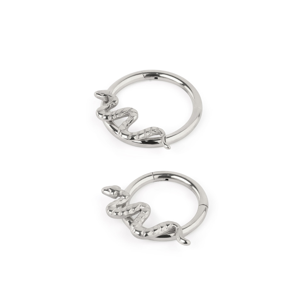 Einzigartig an diesem Ring ist das stilvolle Schlangendesign, das die Vorderseite ziert. Beachte die Position der Schlange auf diesem Ring, wenn du überlegst, für welches Piercing du den Schmuck brauchst.