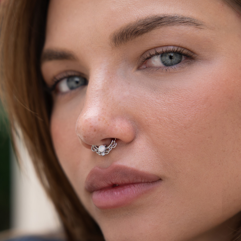 Septumpiercing mit Opalstein und Kettendesign