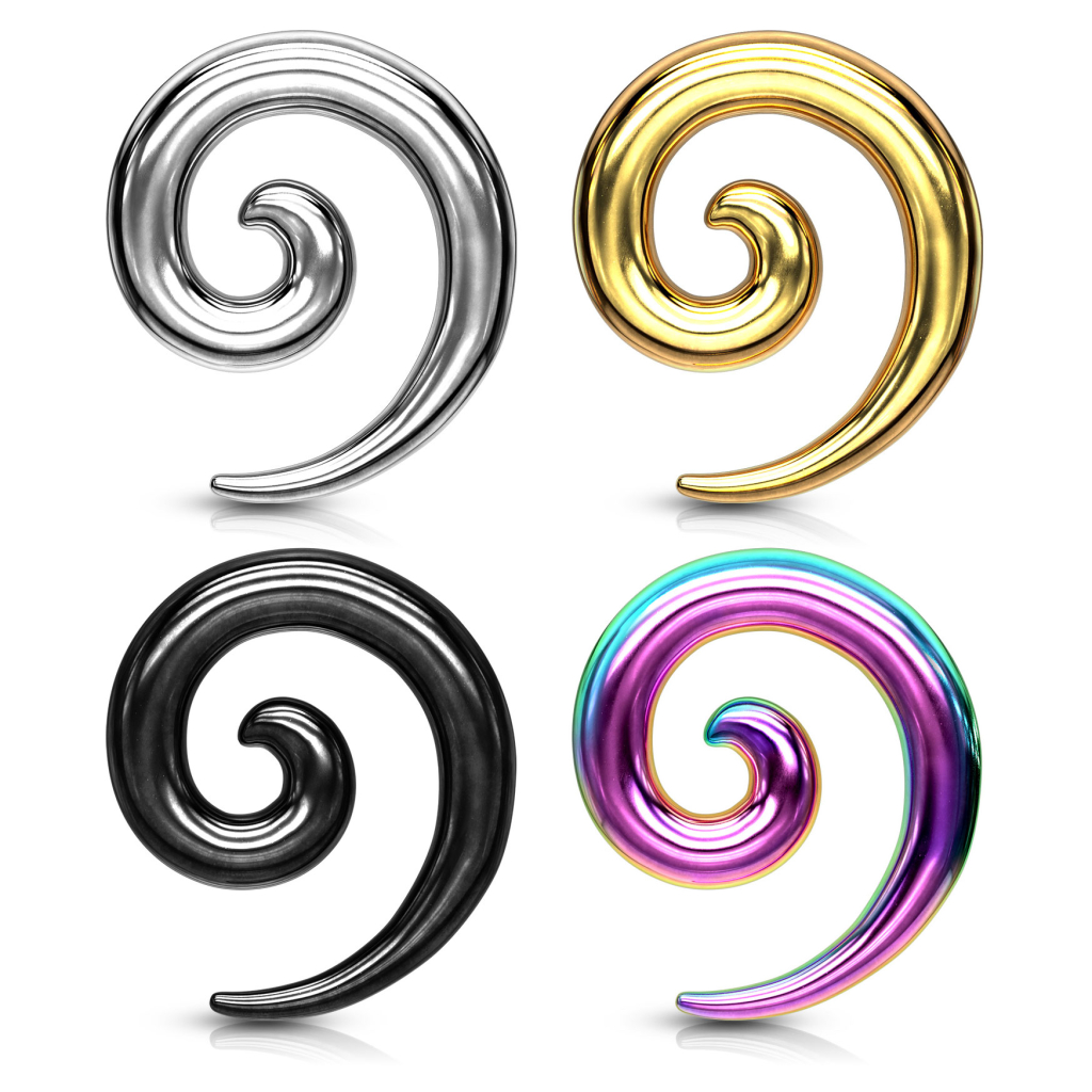 Diesen Spiraltaper kann man in vier verschiedenen Farben bekommen. Natürlich auch das klassische blanke Modelle, für das die meisten Menschen schwärmen, aber es gibt auch andere Farben, wenn du mal Lust hast etwas anderes auszuprobieren. Vielleicht magst du ja gerne Schmuckstücke, die einen markanten Touch haben, denn dann wäre das schwarze Modell perfekt für dich. Wenn du aber doch lieber die etwas elegantere und femininere Variante bevorzugst, wäre das goldfarbene Modell eine hervorragende Wahl. Last, but not least haben wir auch ein multifarbenes Modell, daß alle schönen Farben in sich trägt.