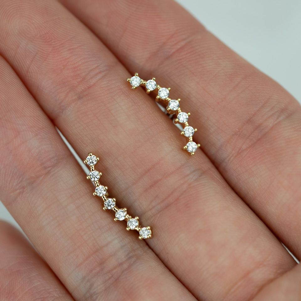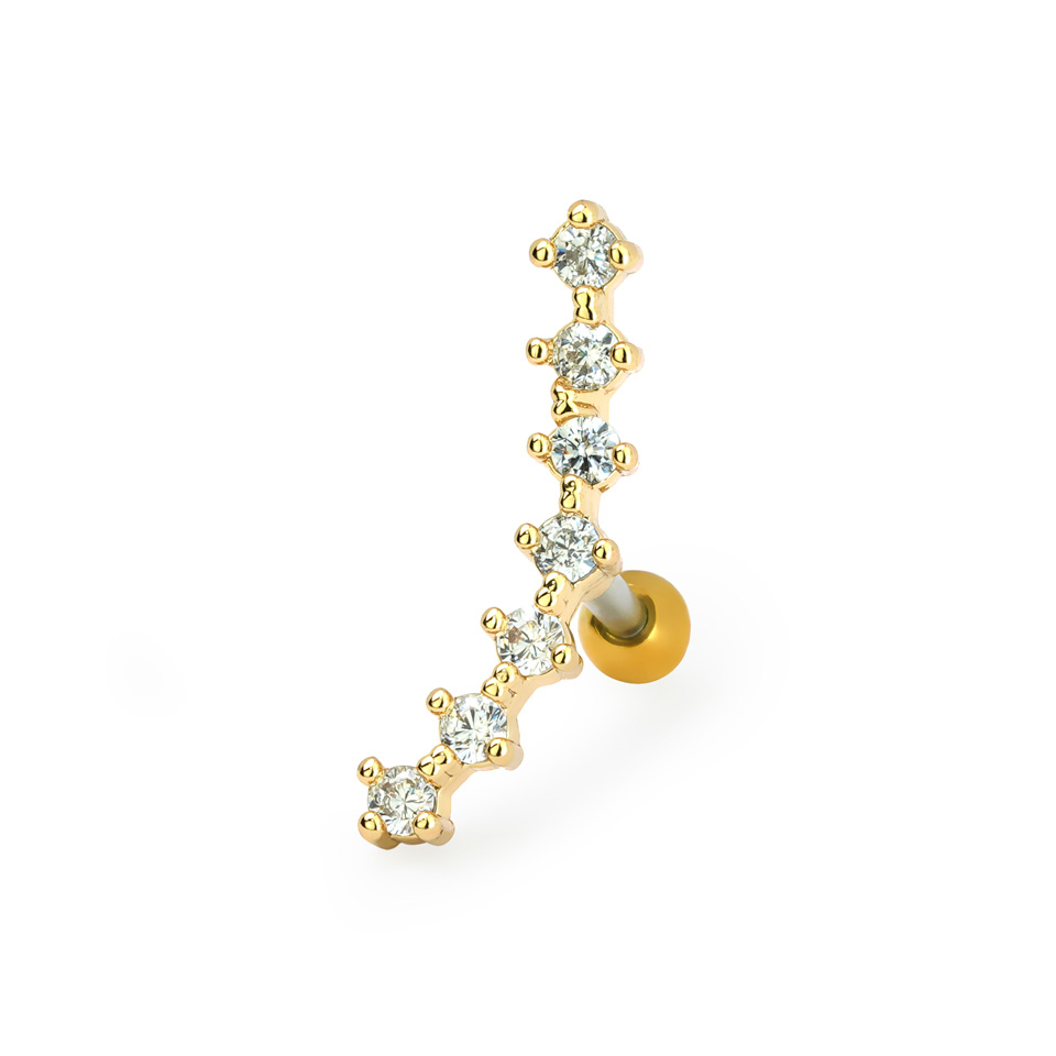 Ein toller Ohrschmuck rundet jeden Look ab, und wenn du etwas auffälligeres brauchst, ist dies das richtige Accessoire für dich. Diese gebogene Stabspitze funkelt wie eine Sternenreihe am Nachthimmel. Dieses Schmuckstück zieht allein schon genug Aufmerksamkeit auf sich, ist aber auch eine perfekte Ergänzung zu der anderen Schmuckkombinationen. Zum Beispiel kannst du es in einem Helix-, Conch- oder auch in einem Ohrläppchen Piercing verwenden. Du kannst es beliebig oft ausprobieren und verschiedene Kombinationen kreieren.