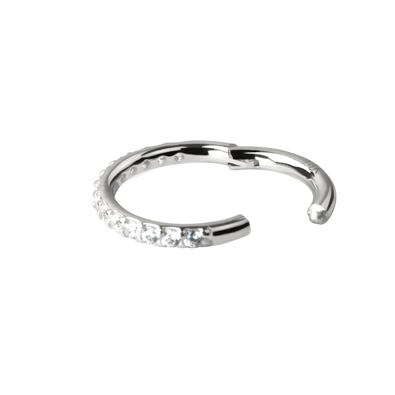 Scharniere an Ringen sind fantastisch. Sie sind unglaublich leicht zu öffnen und zu schließen, ohne sich darüber Sorgen machen zu müssen, dass der Schmuck rausfallen könnte. Der Ring ist in zwei 14 Karat Gold Varianten erwerblich - einschließlich der eleganten 14 Karat Weißgold Edition. Auf der Außenseite des sichtbaren Teils des Rings befindet sich eine lange Reihe an kleinen klaren Steinen, die den Schmuck verzieren. Der Ring kann an vielen verschiedenen Stellen des Körpers getragen werden - er kann zum Beispiel sehr gut in einem Augenbrauen- oder Lippenpiercing verwendet werden. Achte hierbei aber darauf, dass die Maße deines Piercinglochs denen des Schmucks entsprechen. Da der Schmuck an mehreren Stellen des Körpers getragen werden kann, haben wir dir die Möglichkeit gegeben, aus vielen Durchmessern des Rings zu wählen, so dass dir Ring bestmöglich passen kann.