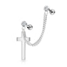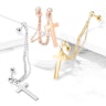 Ein hübsches steinbesetztes Stabset mit Kreuz, verbunden durch eine Doppelkette. Du kannst zum Beispiel einen Stab in dein Helixpiercing und den anderen in dein Ohrläppchenpiercing einführen. Dadurch wird sich die Kette perfekt an die Form deines Ohrs anpassen.
