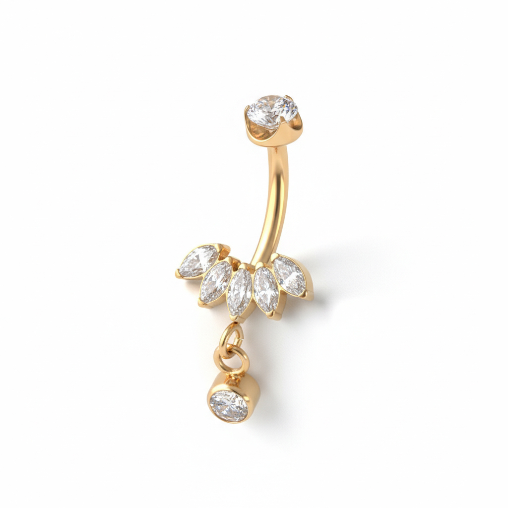 Name: Titan-Bauchnabelring mit Marquise-Steinen und Anhänger