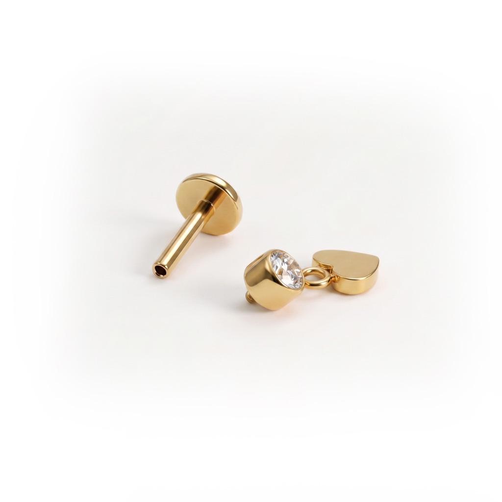 Es besteht aus Titan und ist damit hypoallergen, wasserfest und robust genug für den Alltag. Das Innengewinde sorgt für leichtes Einsetzen und sicheren Sitz, damit alles genau da bleibt, wo es hingehört. Mit flacher Rückseite für angenehmen Tragekomfort und geeignet für Conch-, Helix-, Ohrläppchen- oder Tragus-Piercings.
