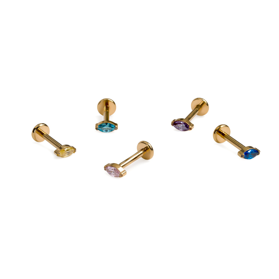 Geeignet für vordere Helix-, Conch-, Helix-, Ohrläppchen- oder Tragus-Piercings. Ein Labret, unzählige Möglichkeiten.