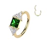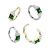 Dies ist das Upgrade, das deine Piercings noch nicht kannten. Dieser Bodymod Premium Titanring mit grünem Stein in der Mitte besticht durch sein kühnes, quadratisches Design, das von zwei weißen, dreieckigen Steinen eingerahmt wird, die das Licht aus jedem Winkel einfangen. Eine elegante Geometrie mit einem Hauch von Farbe.