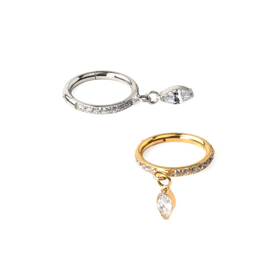 Name: Titan-Scharnierring mit vorderseitigen Steinen und Marquise geschliffenem Anhänger