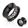 Dieser schöne schwarze Acryltunnel wurde auf der Innenseite mit einem wirklich coolen Muster aus Muschelschalen verziert. Nicht nur die Passform des Tunnels ist gut fürs Ohr, sondern auch das einzigartige Design mit den eingearbeiteten Muschelschalen ist wunderschön und einzigartig.