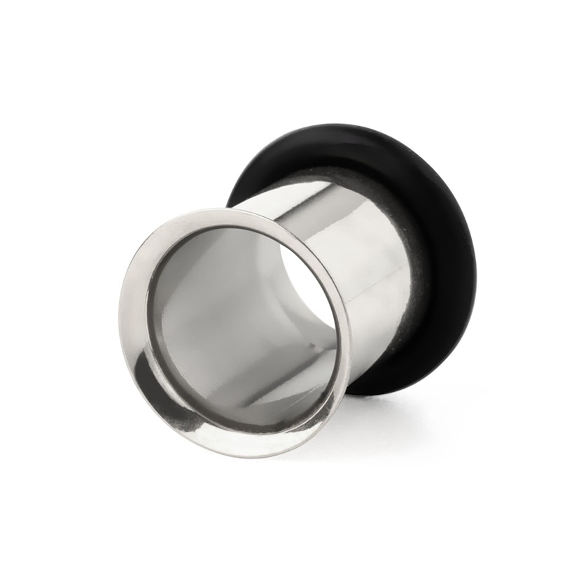 Ganz einfacher Tunnel aus chirurgischen Stahl mit einem O-Ring für diejenigen, die ihr Stretch gerne im einfachen Design halten wollen. Dieser Tunnel ist extra dünn in seiner Form, so daß er leicht und bequem im Ohr zu tragen ist, auch in den großen Größen. Zudem lässt sich der Tunnel auch leicht ins Ohr einführen, da die Rückseite flach ist und direkt ins Ohr rutschen kann. Der mitgelieferte O-Ring sorgt dafür, daß der Tunnel an seinem Platz bleibt und nicht heraus rutschen kann.