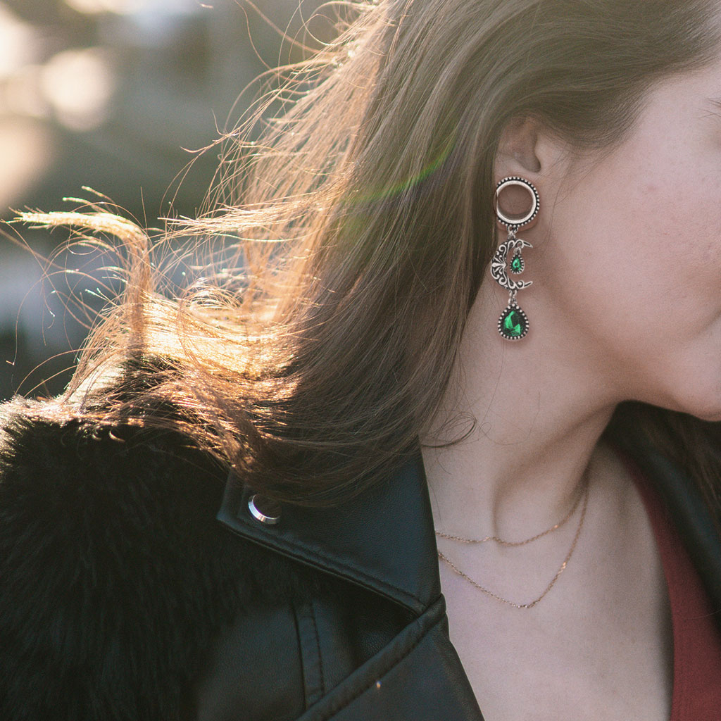 Tunnel mit filigranem Halbmond und tropfenförmigen Steinen
