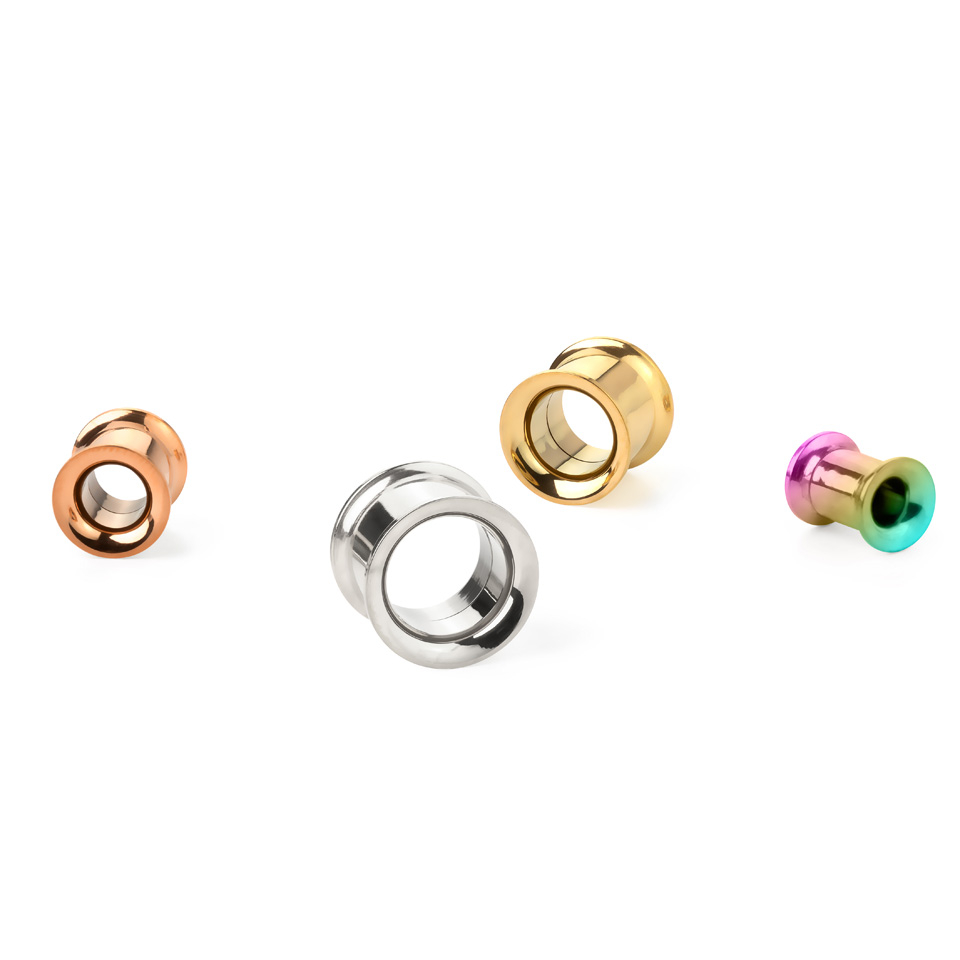Diesen Tunnel führen wir in drei verschiedenen Farben und verschiedenen Größen. Durch das Schraubgewinde ist es auch unglaublich leicht, den Tunnel im Ohr einzusetzen oder zu entfernen. Du musst den Tunnel nur auseinanderschrauben, durch dein Stretch schieben und wieder zusammenschrauben. Den Übergang wird man nicht in deinem Ohr sehen können.