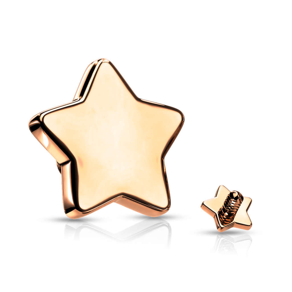 Alle Sternen wurden aus Chirurgenstahl hergestellt und haben in einem speziellen Oberflächenverfahren eine dünne Schicht farbiges Titan erhalten. Das Maß der Dermal Schraube auf der Rückseite ist ein Standardmaß und passt somit in alle Dermal Anchors im Körper