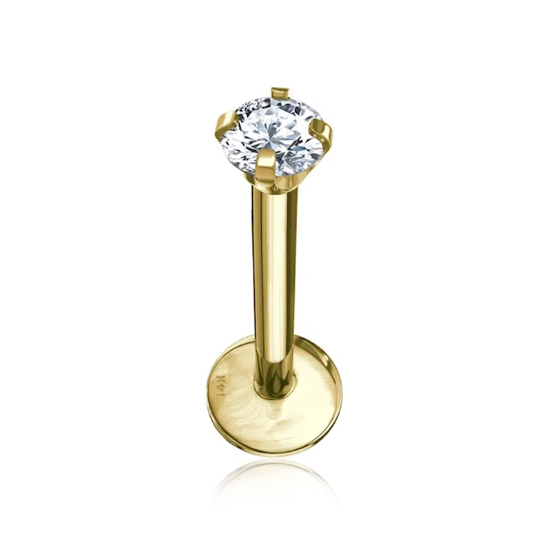 Name: Labret aus 14 Karat Gold mit Innengewinde und einem Stein