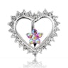 Der Schmuck wurde aus Chirurgenstahl gefertigt und besteht aus einer herzförmigen Kante, die am äußeren Rand mit vielen kleinen Steinen verziert wurde. In der Mitte des Herzens sitzt eine kleine Blume, die aus schönen Aurora Borealis Steinen geformt wurde und in allen Regenbogenfarben leuchtet, sobald das Licht darauf fällt. Die Blume dient auch gleichzeitig als Budnkugel und kann dementsprechend auch auf- und abgeschraubt werden.