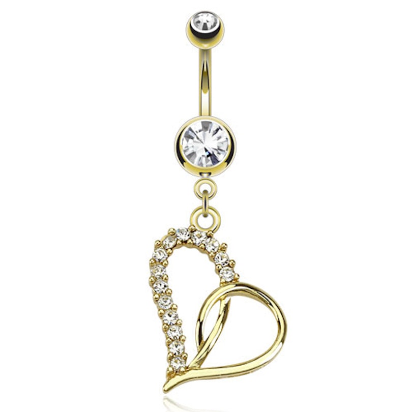 Vergoldetes Bauchnabelpiercing mit einem Herz und klaren Steinen
