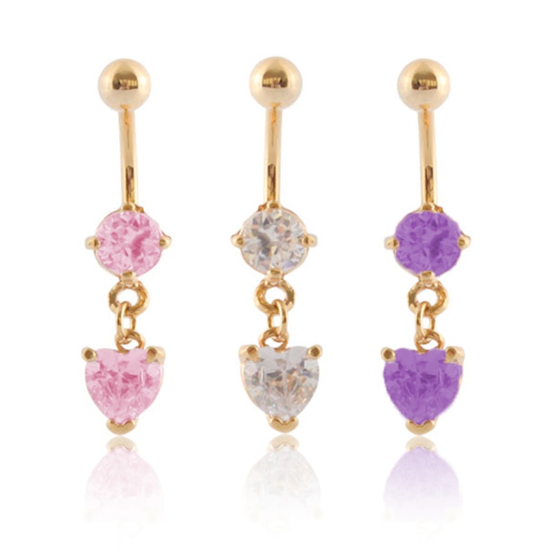 Name: Vergoldetes Bauchnabelpiercing mit Steinen und herzförmigen Anhänger