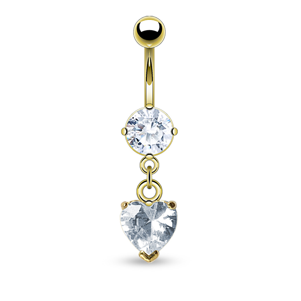 Vergoldetes Bauchnabelpiercing mit Steinen und herzförmigen Anhänger