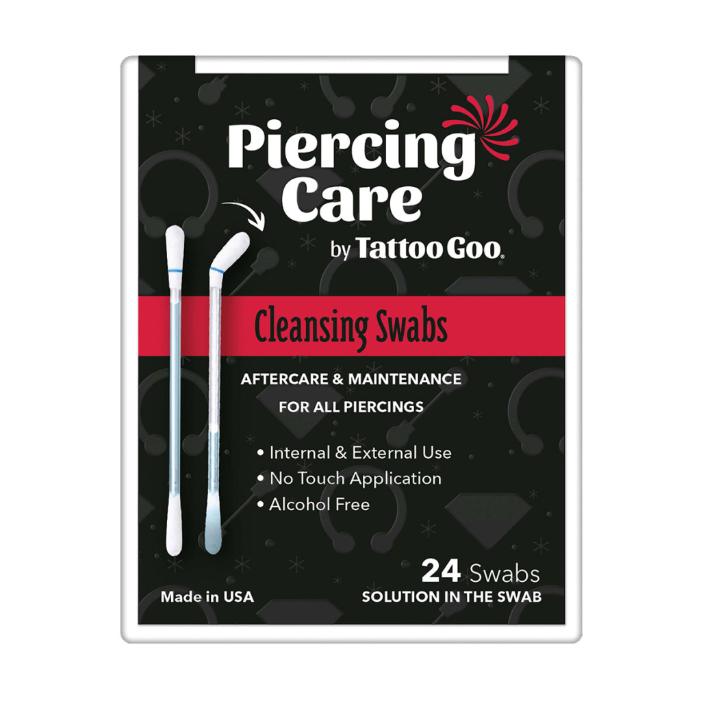 X-pressions Wattestäbe, ein Produkt der amerikanischen Marke Tattoo Goo, sind eine sehr leicht anwendbare Pflegemethode für neue Piercings, insbesondere dann, wenn du viel unterwegs bist. Du brauchst weder verschiedene Pflegeprodukte mixen noch irgendwelche Behälter sterilisieren.