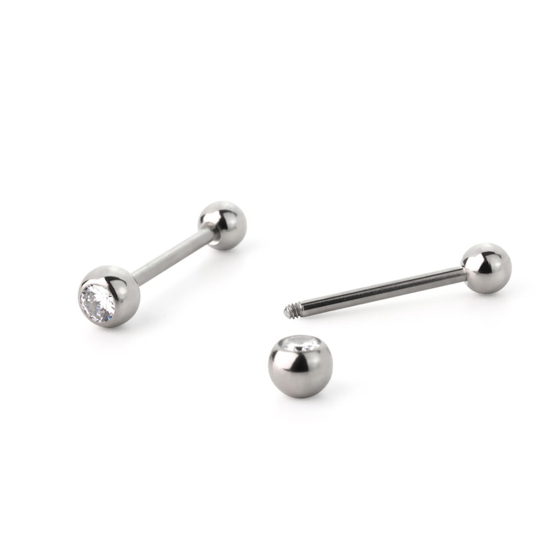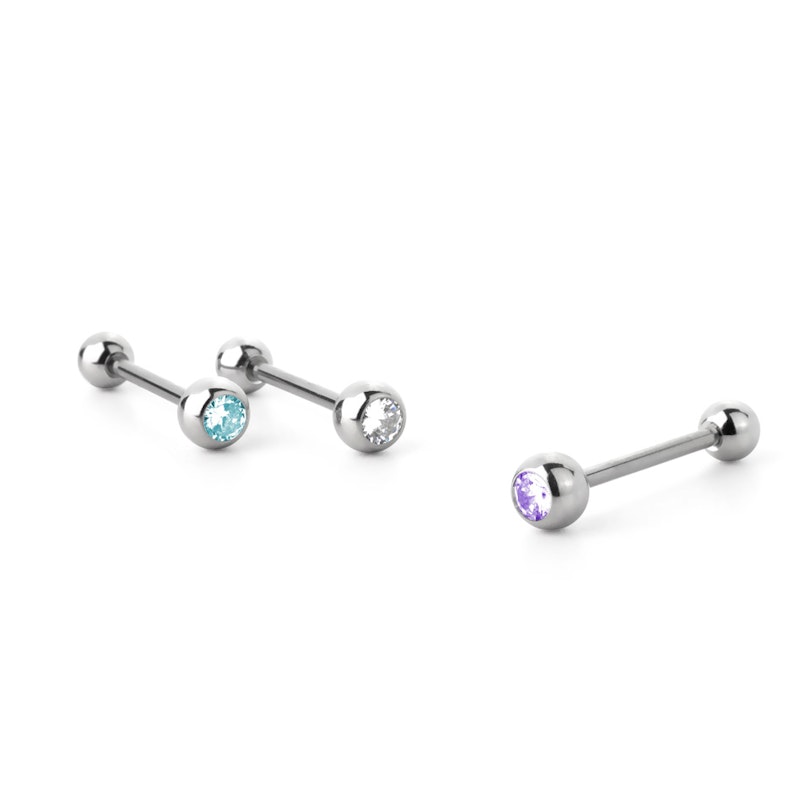 Zungenpiercing aus Chirurgenstahl mit verschieden farbigen Steinen