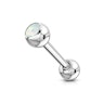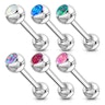 Dieses Zungenpiercing ist wie jedes andere Zungenpiercing, aber mit einer etwas größeren Topkugel als die Bundkugel. In der Topkugel ist ein synthetischer Opal, der durch das umliegende Metall in seiner Fassung gehalten wird. Der Opal ist nicht festgeschweißt oder geklebt, so dass es vielleicht den Anschein erweckt, als wenn der Stein lose wäre. Keine Angst, dass soll so.