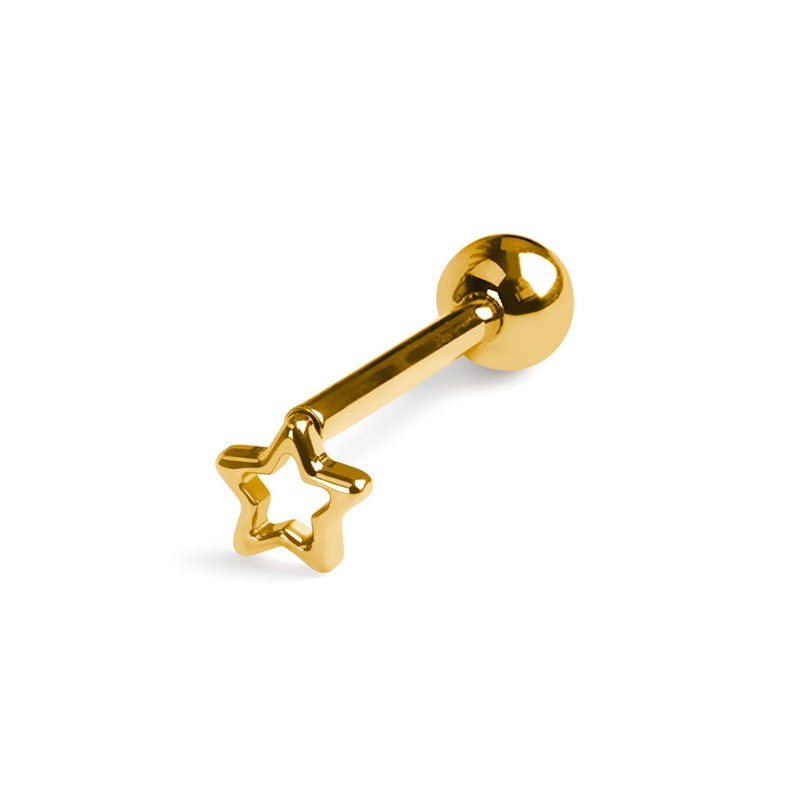 Dieser Zungenpiercing aus Titan mit Stern ist hypoallergen und daher für Personen mit empfindlicher Haut geeignet. Es hat ein Innengewinde, d.h. der glatte Stab wird durch das Piercing gesteckt und dann eingeschraubt.