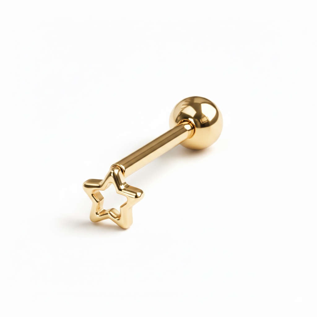 Dieser Zungenpiercing aus Titan mit Stern ist hypoallergen und daher für Personen mit empfindlicher Haut geeignet. Es hat ein Innengewinde, d.h. der glatte Stab wird durch das Piercing gesteckt und dann eingeschraubt.